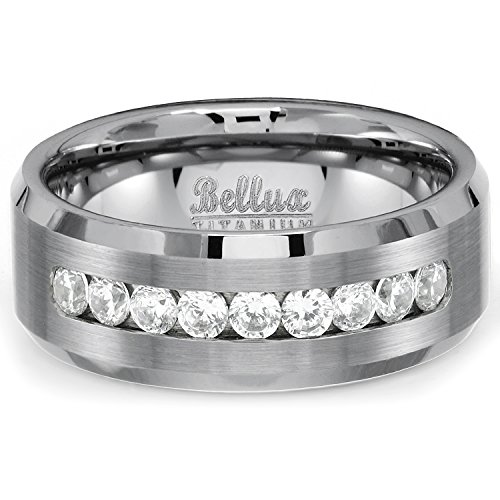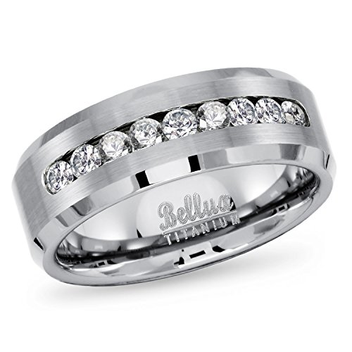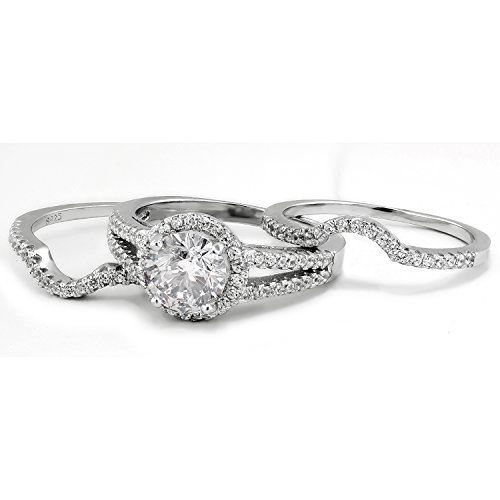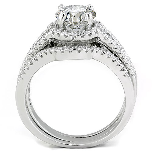 -. Feature : HIS AND HERS WEDDING RING SETS features women's genuine .925 Sterling Silver 2.62 carats equivalent 3-piece wedding and engagement rings set and men's solid Titanium CZ matching wedding band / WOMEN'S HALO WEDDING RINGS made from genuine .925 sterling silver, 1.67 carat main stone top graded Cubic Zirconia, 95 accent CZ (total 0.95 carat) provide extra sparks. / Men's 8mm wide solid titanium wedding band features 9 sparkly cubic zirconia for total 0.56 carat, non-tarnish and non-oxidited, comfort-fit design inner band makes it easy for daily wear. / PERFECT HIS AND HERS WEDDING RING SETS. This gorgeous couples rings sets will be a perfect fit for you wedding. / FREE GIFT: One pair of sterlgin silver stud earrings, limited time only!