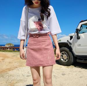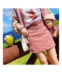 ミニ丈スカート ベルト付き 台形スカート コーデュロイ 秋冬 春夏 ハイウエスト トレンド プチプラ
