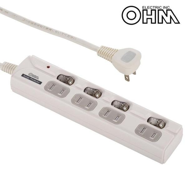 ACアダプターが使えるゆったりスペースコンセントあり。壁にかけられるフック穴付きです。 生産国:中国 ※サプライヤー直送品 ご注文後3~4営業日後の出荷となります【商品名】OHM 雷に強い 節電タップ 4個口 3m HS-TPK43A65W