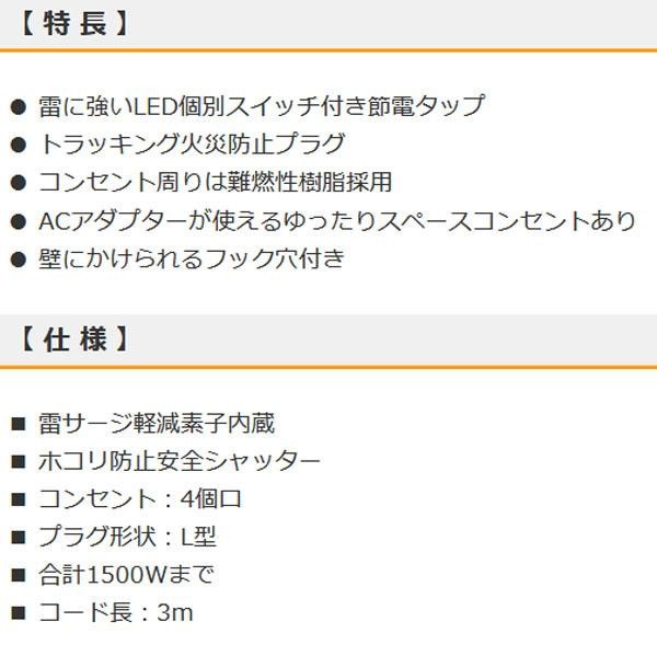 雷に強いLED個別スイッチ付き節電タップ。