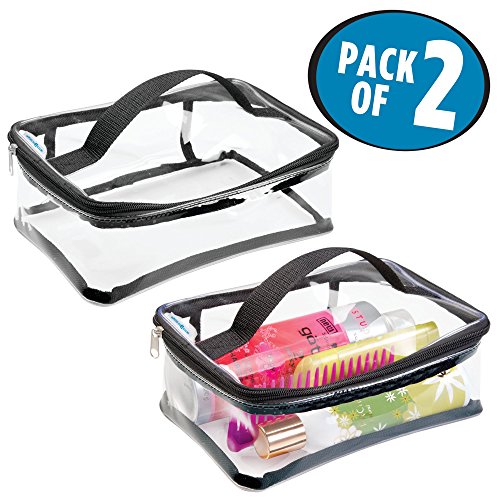 - PORTABLE STORAGE: Use for cosmetics, hair tools, makeup, small accessories and more; Durable smooth-glide zipper with black fabric trim detail; Durable grosgrain handle for easy transport; Top opens completely for easy-access to items inside; Set of 2