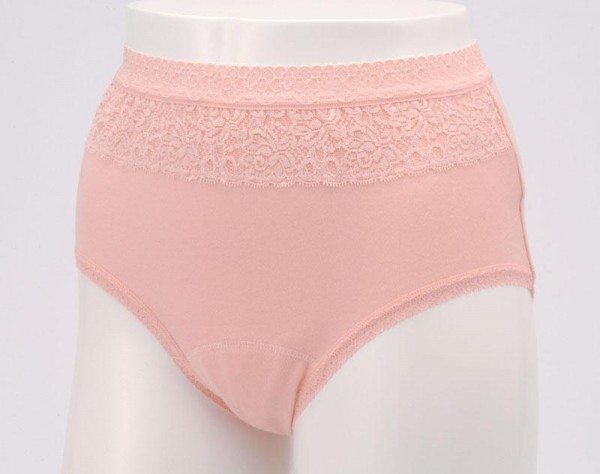 | 普通の下着感覚でご使用頂けるショーツです。フロントレースのおしゃれなデザイン。5層構造の吸水布には、消臭効果のある素材を採用しています。 |