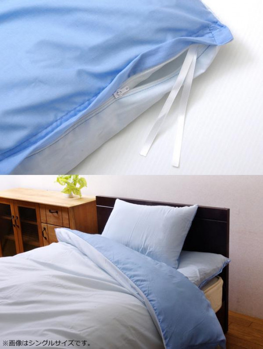 サラッとした肌触りのリバーシブルタイプの掛け布団カバーです。季節を問わず、オールシーズンご使用頂けます。縦方向にファスナーが付いているためスムーズな出し入れが可能です。また、お布団とカバーがズレにくいよう四隅に固定ヒモを付けております。 |