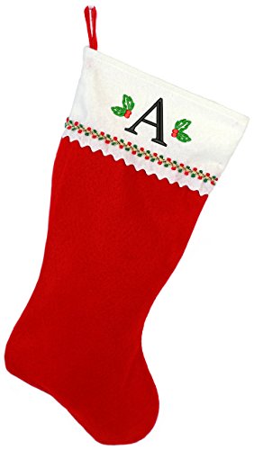 Embroidered Initial Christmas Stocking, Red and White Felt, Initial A