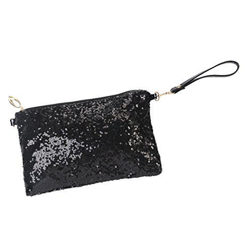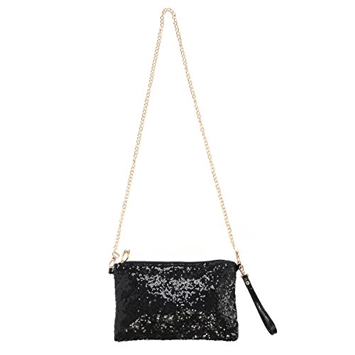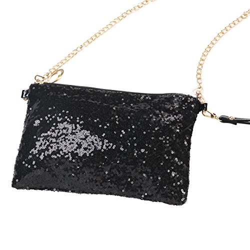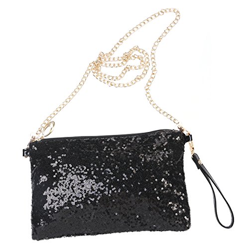 OULII Fashion Glitter Bag Handbag Party Evening Clutch Shoulder Bag for Women (Black)