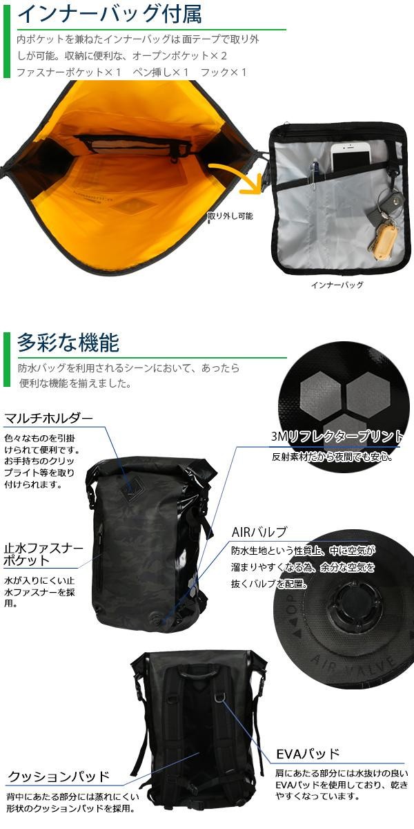 | 仕様 | 容量:25L ポケット数:1(インナーバッグ付き) |