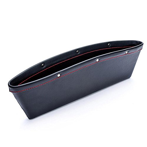 Geekercity Premium Leather Car Seat Gap Filler - Auto Vehicle Car Mount Seat Slit Side Gaps Fills Pocket Catch Caddy Catcher Storage Organizer Box Pad Bag Phone Holder [Black]