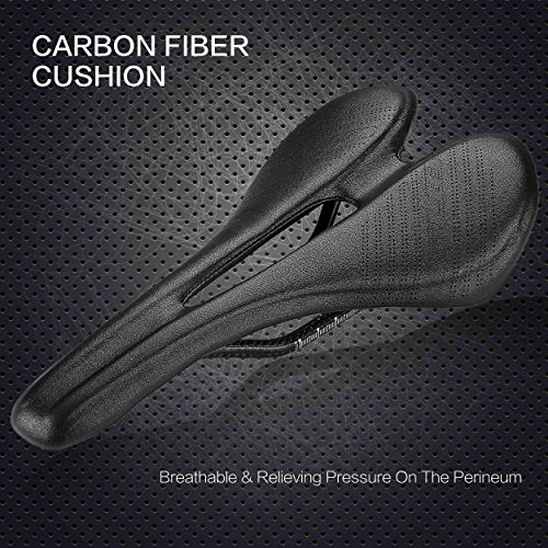 Best Material: Made of the best quality carbon microfiber leather, through handcraft, soft breathable and quality guaranteed, much better than PU and foam bike saddle.