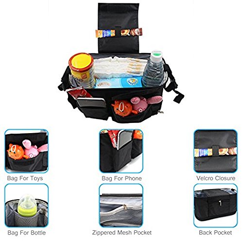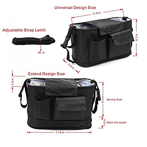 Multi-purpose use: The stroller organizer can be extend a bigger space.You can hand it on the stroller , hand it on your car seatback ,or sling it over the shoulder with its long strap.
