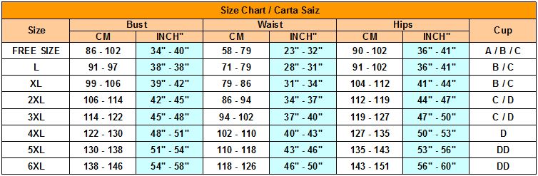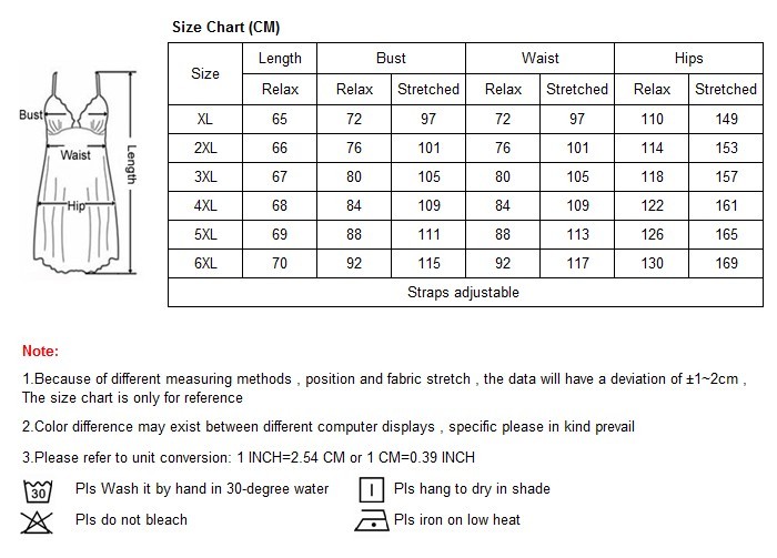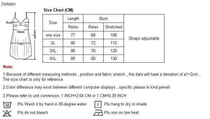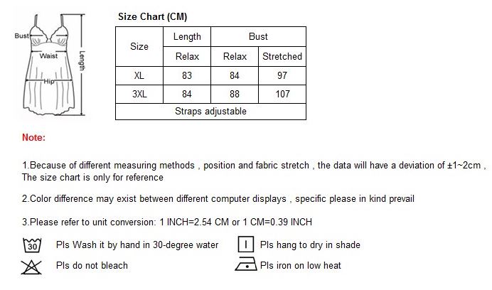Charta saiz kami adalah ukuran standard untuk semua baju tidur saiz besar. Tetapi ia ada beza untuk sesetengah design. Untuk baju tidur yang ketat design, kami cadangkan anda pilih 1 saiz lebih besar daripada ukuran sebenar anda. Untuk baju tidur longgar design, anda boleh pilih mengikut ukuran sebenar anda. Walau bagaimanapun, ini ada tips kami daripada feedback customer kami. Anda boleh pilih mengikuti sukahati anda..