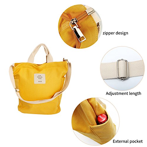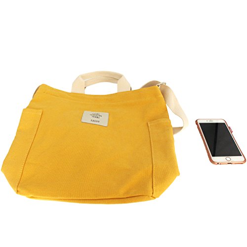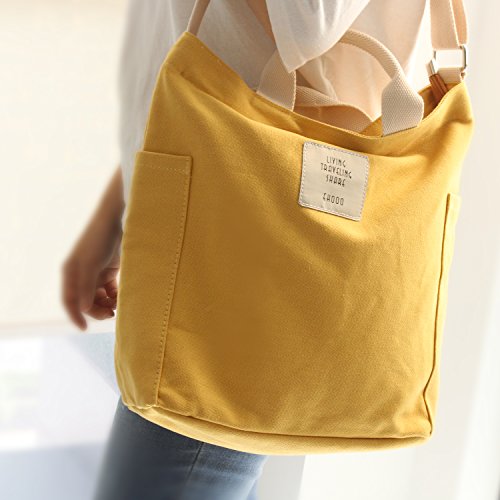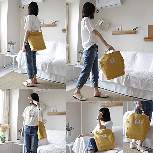 Woman Canvas Shoulder Bag Cotton Tote Casual Work Bag Large Capacity Beach Bag Yellow