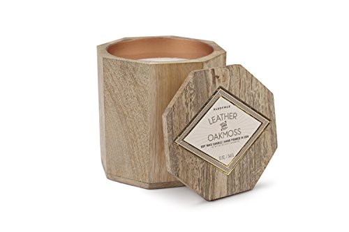 Woods Collection Soy Wax Candle In Mango Wood Bowl, 12-Ounce, Leather & Oakmoss