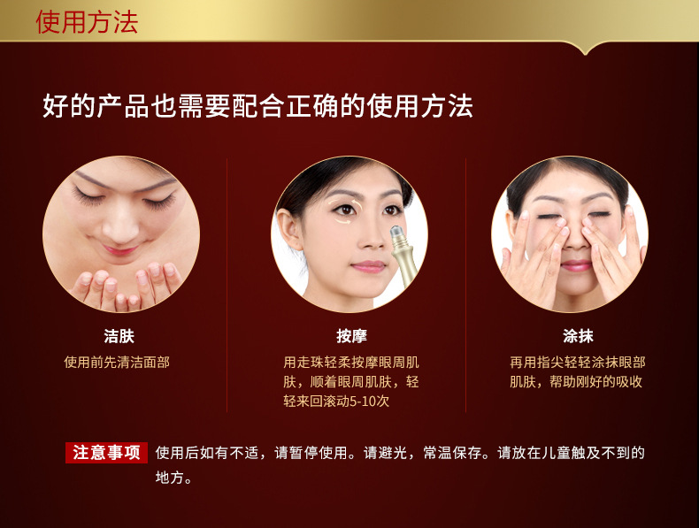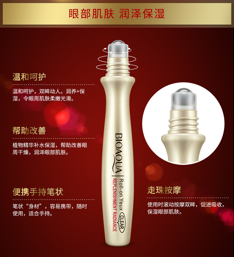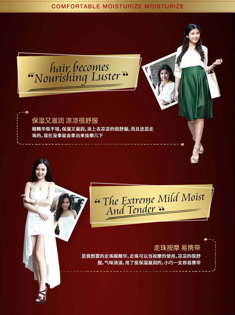 2.Roll gently massage using skin around the eye, along the eye skin, gently roll back and forth 5-10 times