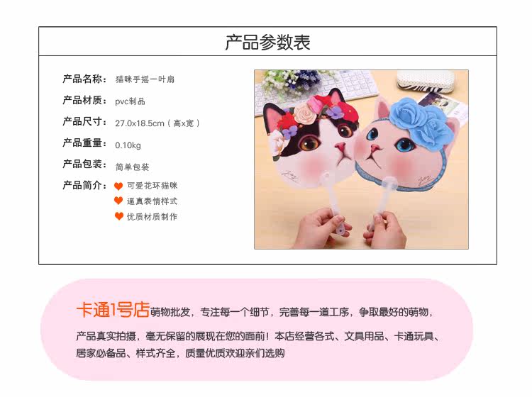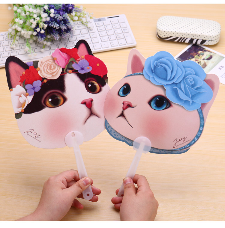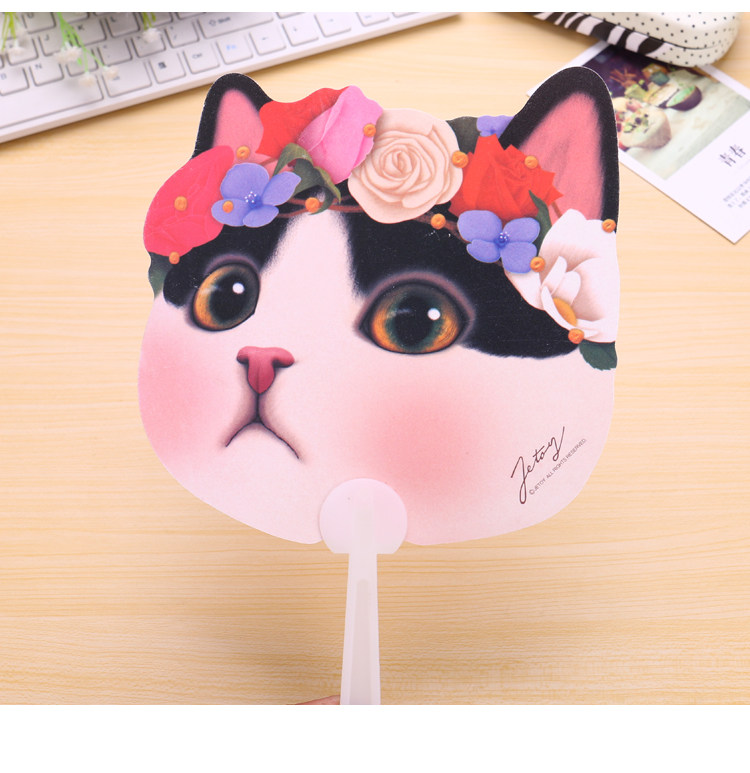 可爱儿童卡通花环猫咪双面扇子 塑料蒲扇日用扇运动扇广告扇批发