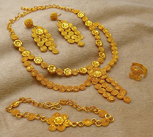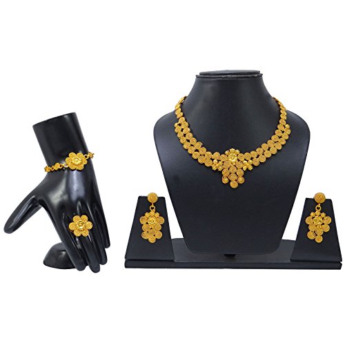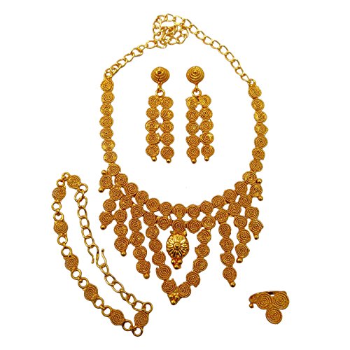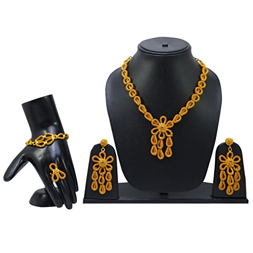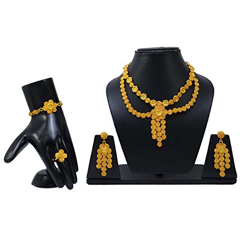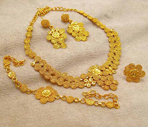 -. Binding : Jewelry -. Brand : Banithani -. Department : womens -. Feature : This beautiful Necklace Set is handcrafted in alloy with very fine quality . / Necklace Set Alloy Coated with 18K Gold Plating / Size: Earring Length: 2.5" Inches Long; Ring Design Size: 0.6" X 0.5" Inches; Bracelet Size: 9.9" X 0.9" Inches; Necklace Drop: 6.3" Inches / SKU: BNG2714A ; Made In India / Discover more Beautiful Jewelry from our collection, click on the link "Banithani" above the title. -. Label : Banithani -. Manufacturer : Banithani -. Model : BNG2714A -. MPN : BNG2714A -. PartNumber : BNG2714A -. ProductGroup : Jewelry -. ProductTypeName : FASHIONNECKLACEBRACELETANKLET -. Publisher : Banithani -. Studio : Banithani -. Title : Banithani Gold Plated Indian Necklace Earrings Set Wedding Jewelry Gift For Women
