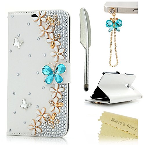 Package contains: one bling wallet case & one blue butterfly pendant dust plug & one sliver feather stylus pen & one soft clean cloth.