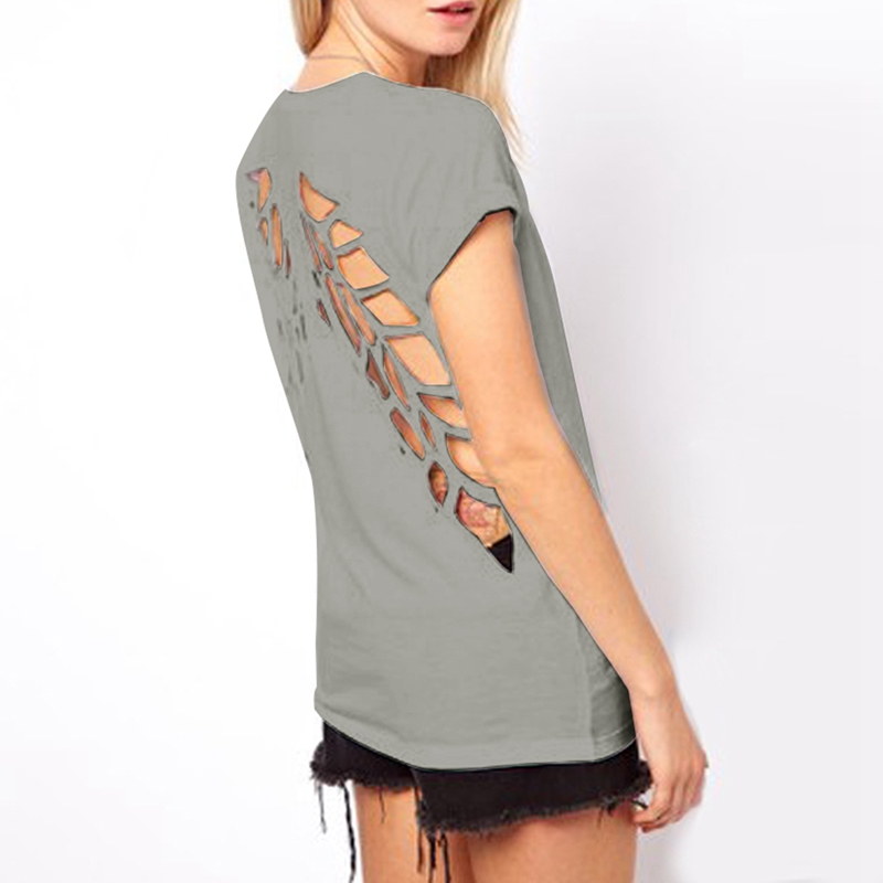 Women\ s New Fashion Summer T-Shirt O-Neck Lazer Cut Angel Wings Short Sleeve Casual Tops