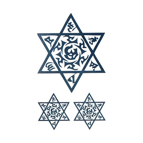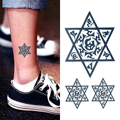 Oottati Small Cute Temporary Tattoo Ankle Hexagonal Star Totem (Set of 2)