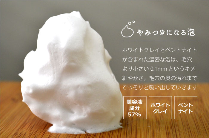 A heavy and dense foam of 0.1 mm which is smaller than the pores enters deep into the pores and sucks dirt with a small hole of the white clay,