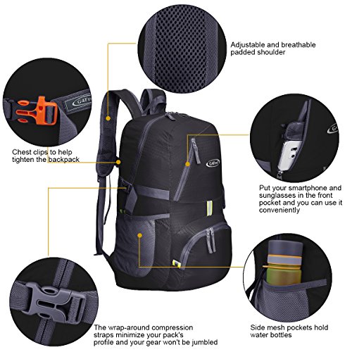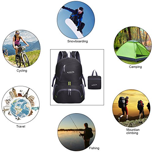 LIGHTWEIGHT(0.6 LB) and ROOMY(40 Liters).A true space saver. Fold the backpack into its own pocket for storage(no more excess baggage fees),and unfold it when you reach your destination. To avoid overweight charge, simply unfold from your checked bags and use it as a carry on for your excess baggage.