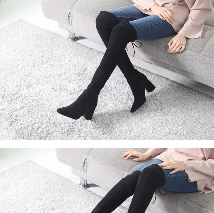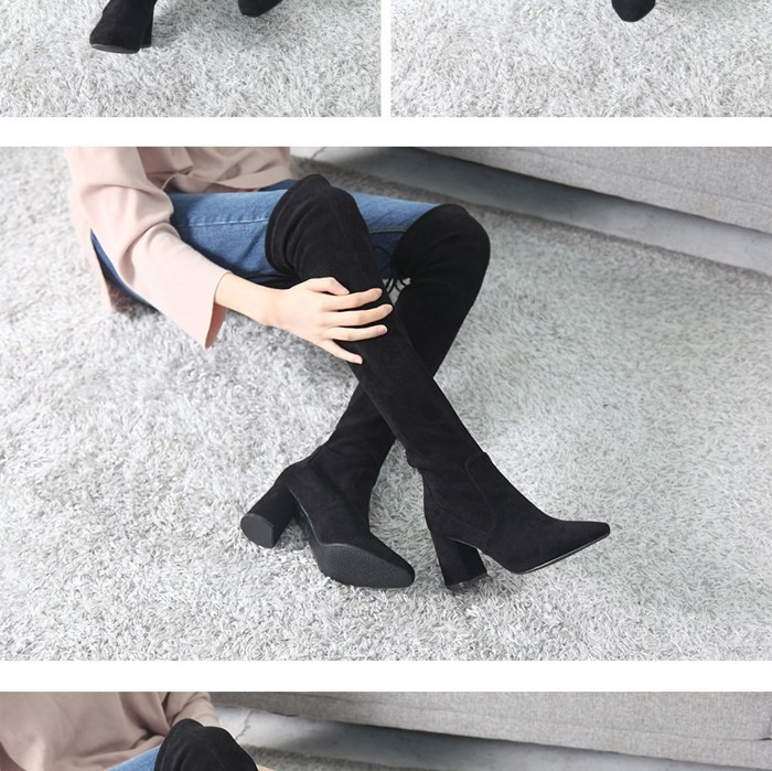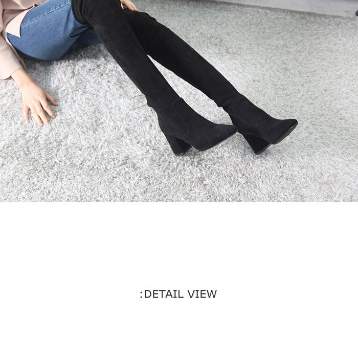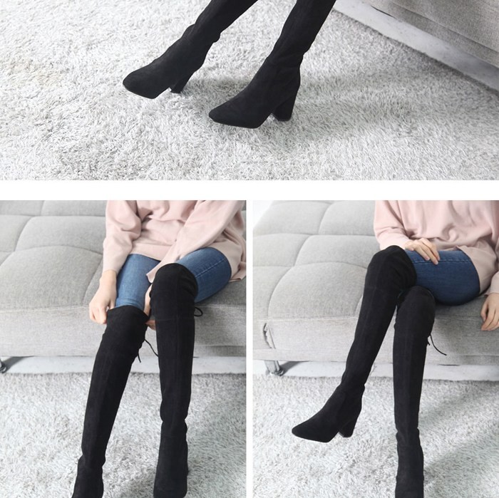 商品名:ロングブーツ レディース ニーハイブーツ スエード調 チャンキーヒール 太ヒール 2017 秋冬 ファッション 靴 婦人靴