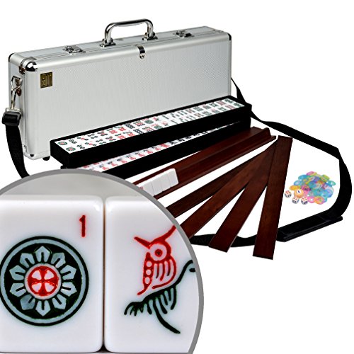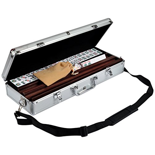 Newly designed modern and easy to carry American Mahjongg set. We've combined everything you need into this compact set without compromising tile, rack, or pusher size. This mahjong set comes with our new magnetic rack and pusher combo, aluminum case with strap for easy carrying, crisp white tiles and black felt trays. The newly featured magnetic pusher rack has a pusher with hidden magnets that snap into place on top of the rack for storage position and onto the back of the rack as well for wall building. This set has 166 tiles, including all the 144 tiles for classical Chinese play as well as an extra 22 tiles for the American version of the game. With this set you can comfortably play either version. To play the Chinese version simply use the red dragons as the 'hong zhong' and the green dragons as the 'fa' tiles.Feature