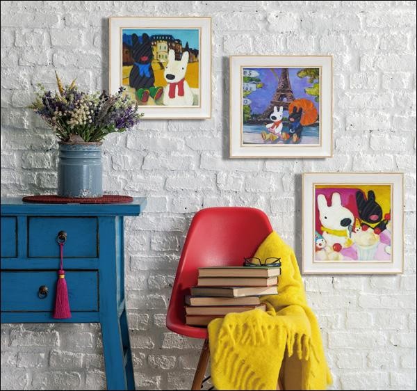 人気の絵本「リサとガスパール」のアートフレームです。今にもリサとガスパールがアートから飛び出してきそう!