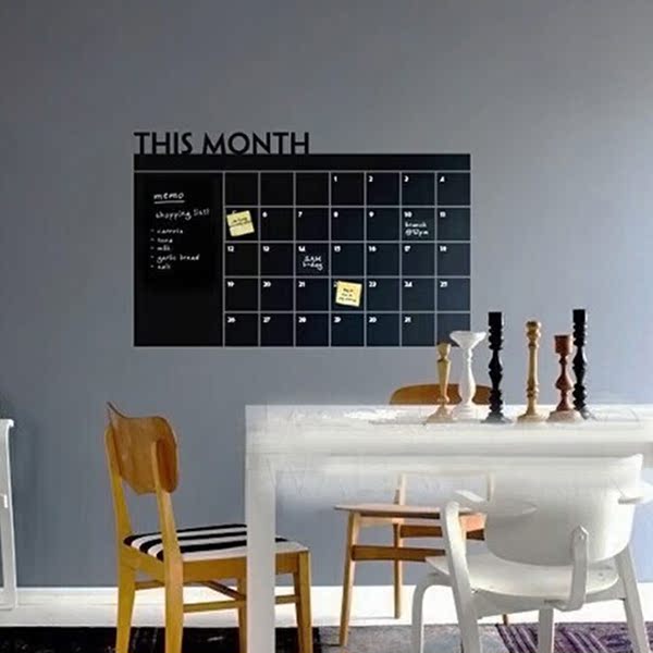 • Stay organized with the help of this chalkboard wall calendar. This calendar wall decal incorporates a black