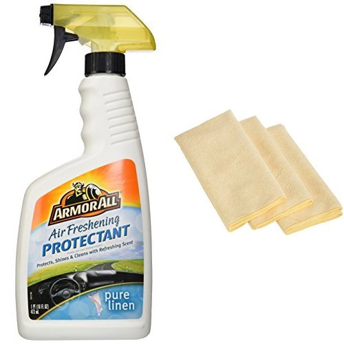 Armor All 17424 Air Freshening Protectant Trigger Spray, Pure Linen Scent - 16 fl. oz. with 3 AmazonBasics Thick Microfiber Cleaning Cloths