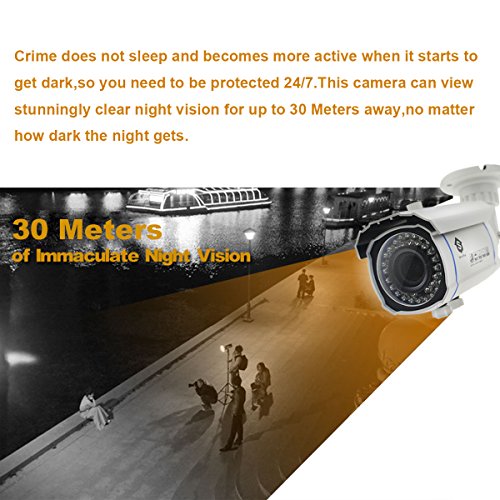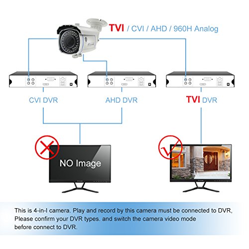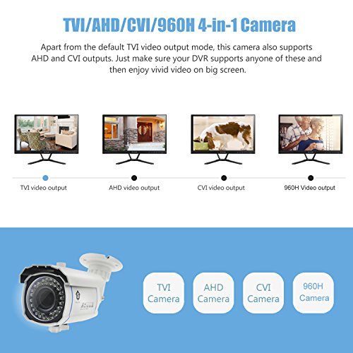 -. Feature : 4 in 1 Bullet Camera:4 modes for video output: 2mp AHD/CTVI/TVI/CVBS / HD Resolution: 1/2.7" 1080p TVI image sensor for true HD analog video,2.8-12mm lens allowing for larger viewing area / Widely Range:114ft IR range with superior video quality in complete darkness, 400m looless transmission without delay / Waterproof Camera: Outdoor IP66 housing made to withstand even the toughest weather conditions / Package Content:1 x Savvypixel Bullet Security Camera; Zero-risk Purchase,365 Days 100% Satisfaction Guarantee and Our Friendly Service
