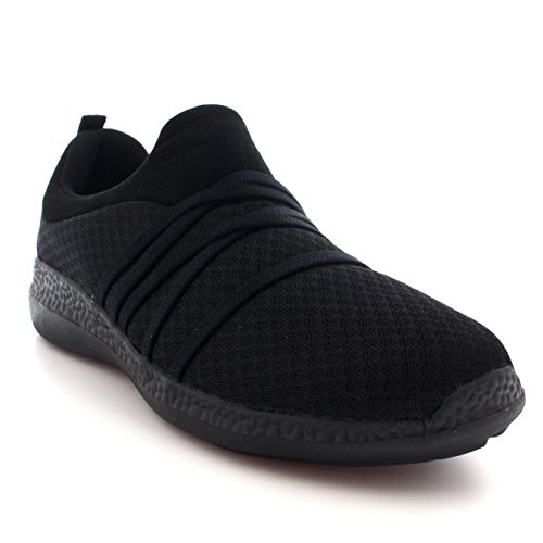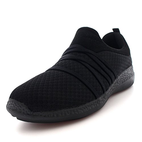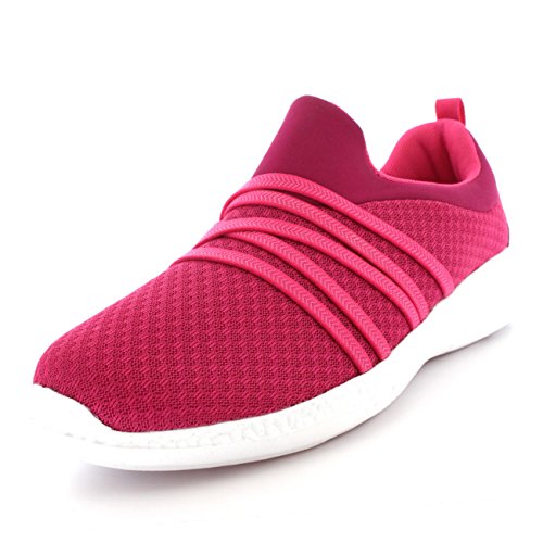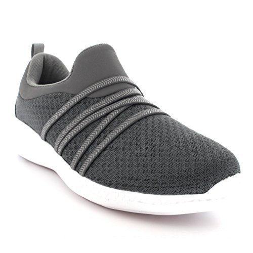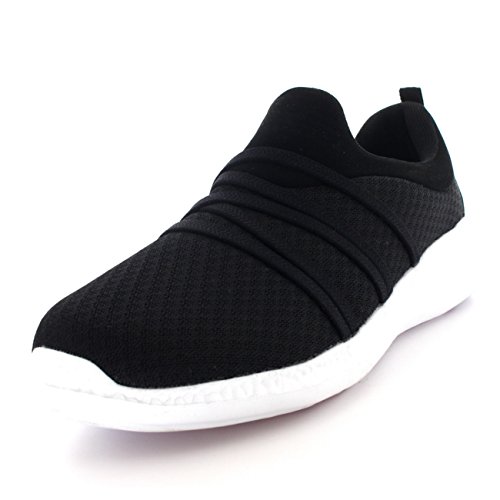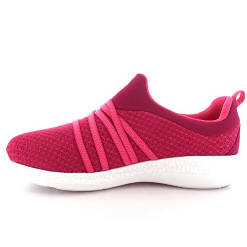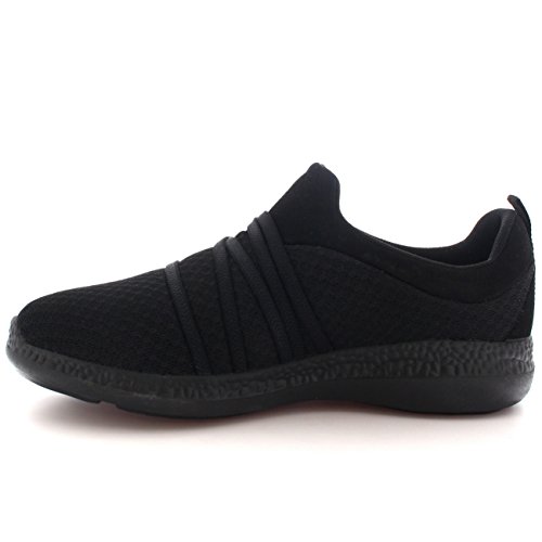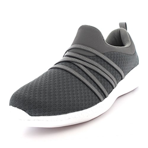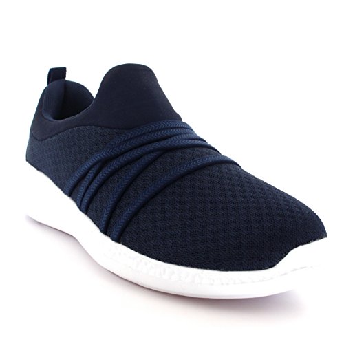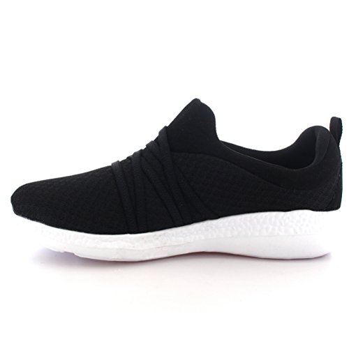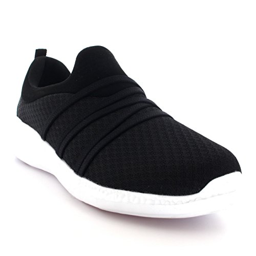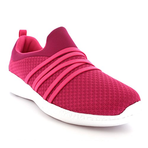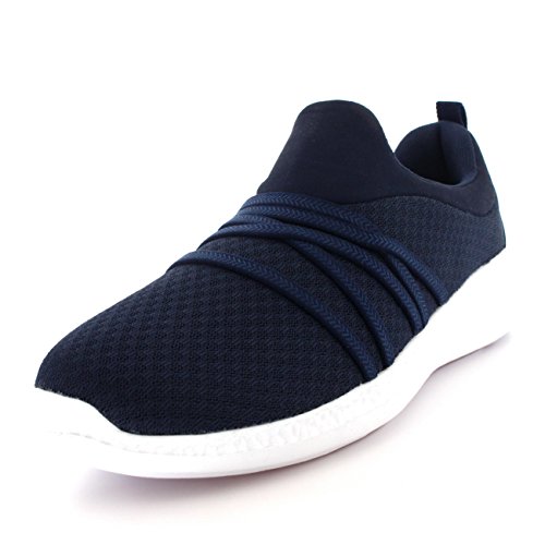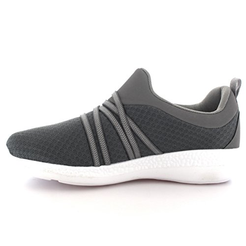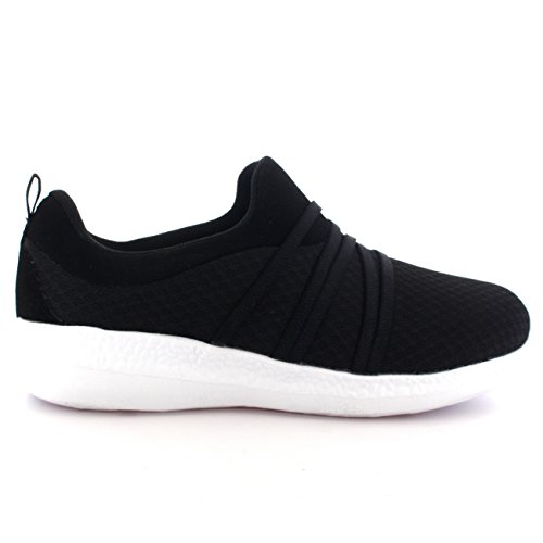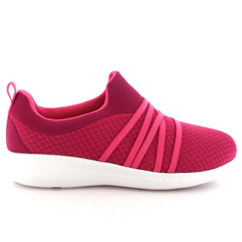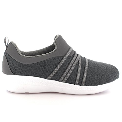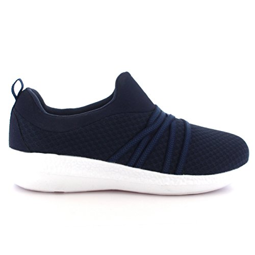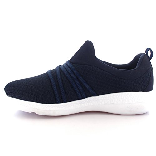 Product Description These sporty style trainers feature lightweight mesh uppers, soft breathable lining, slim outsole unit, easy pull on design, contrasting stitching accents, elastic designs on the vamp, round toe front, lightly padded ankle cuff and a single pull tab on the back heel. 0