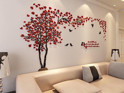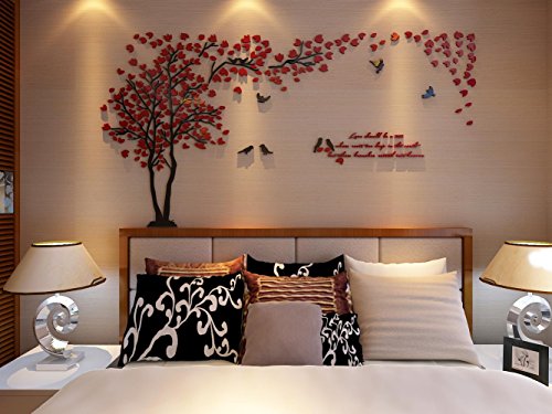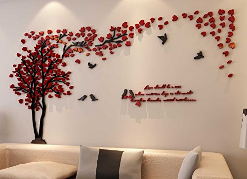 3d Couple Tree Wall Murals for Living Room Bedroom Sofa Backdrop Tv Wall Background, Originality Stickers Gift, DIY Wall Decal Home Decor Art Decorations (Small, Red)