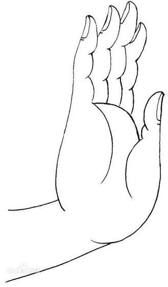 【右手前臂上举于胸前,手指自然向上舒展,手心向外。表示佛为救济众生的大慈心愿。使众生心安,无所畏怖,所以称为施无谓。】