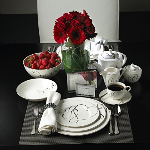 Studio : Lifetime Brands Publisher : Lifetime Brands Binding : Kitchen Product Description Celebrate true love and timeless elegance with Love Story. The graceful bands of platinum wind their way across each plate and feature delicate hearts on accent pieces, making this a classic dinnerware pattern to be treasured for anniversaries to come. Perfect for upscale entertaining. Dishwasher safe. When washing gold or platinum banded dinnerware in the dishwasher, use a gentle cycle and turn off the dishwasher before the drying cycle, or allow the dinnerware to cool before handling it. The high temperature of the heated drying cycle can cause the precious metal bands to soften. Do not use in microwave. Made of high quality porcelain. Charger plate is 14 inch diameter. 0