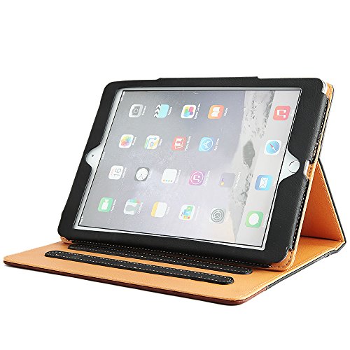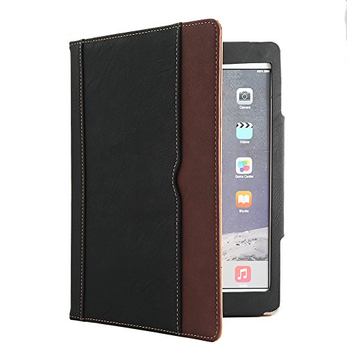 I4UCase Apple iPad 2 / iPad 3 / iPad 4 Case - Soft Leather Stand Folio Case Cover for iPad 2 3 4 Generation, with Multiple Viewing angles, Auto Sleep/Wake, Document Card Pocket (Black and Tan)