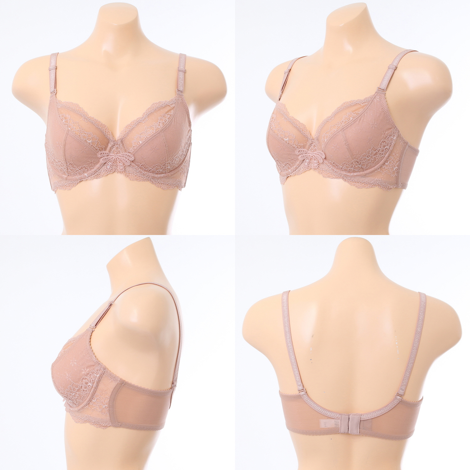 스트레치성이 좋은 자가드 레이스 홑겹 제품으로 하컵부분에 면원단을 덧대어 비침이 없으면서도 시원하고 편안한 홑겹제품의 착용감을 느낄수 있습니다.앞중심쪽에 귀여운 리본모양의 모티브를 매치하여 로맨틱함을 더하였습니다.베이직한 분위기의 브라운과 그레이 컬러 구성**부인군세트팬티(VPTF402A)