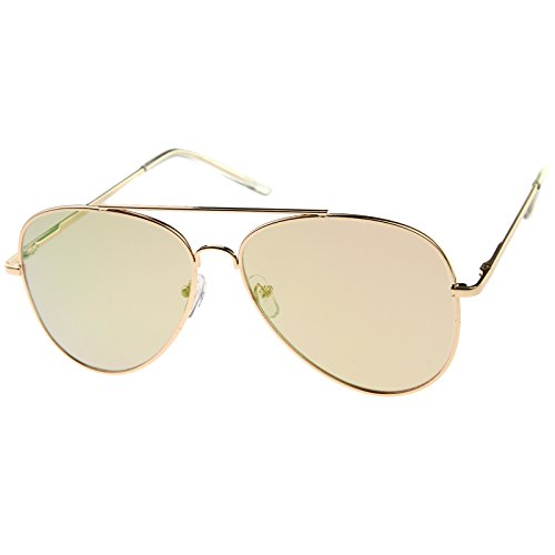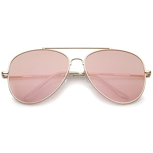 zeroUV - Large Metal Rose Gold Frame Pink Mirror Flat Lens Aviator Sunglasses 60mm