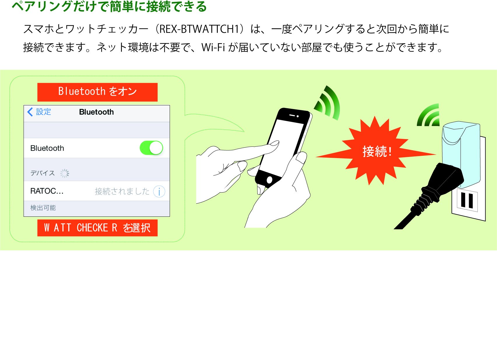 It is difficult with the type of watt checker whose main body has a screen, it can be introduced safely to the back of the equipment and the outlet at a high place.
