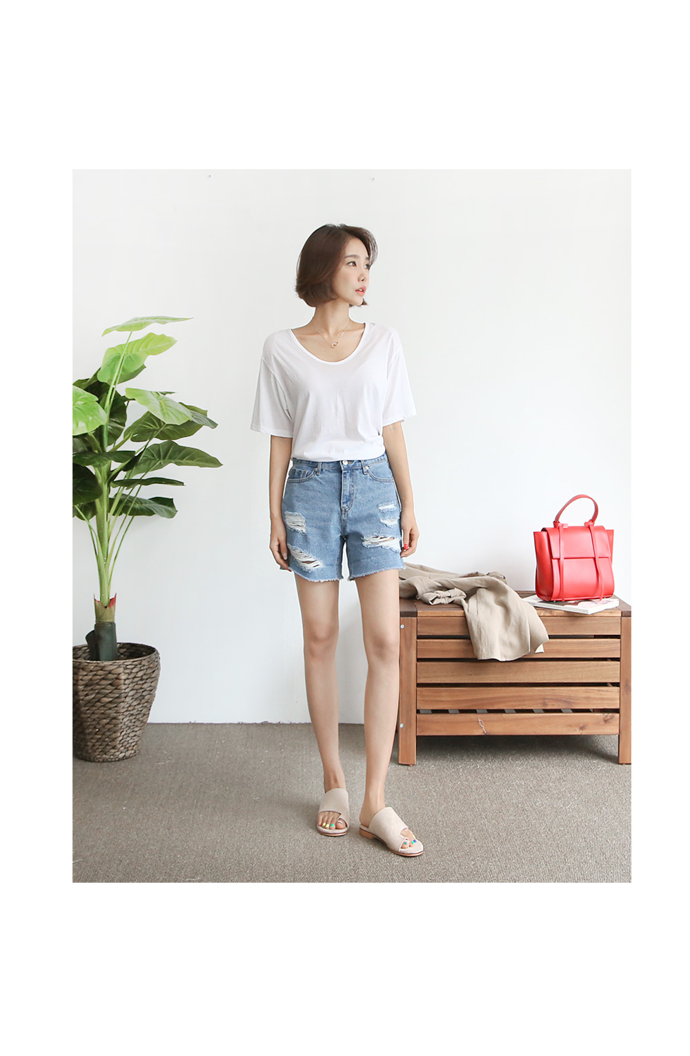 진청롤업해서 즐기실 수 있는 썸머 데님팬츠입니다무릎 위로 떨어지는 길이이지만 너무 짧은길이가 아니라 누구나 부담없이 착용하기 좋은제품입니다여유로운 바지 통으로 캐주얼하면서데미지 디테일들로 빈티지하게 즐기실 수 있습니다시즌 내내 데일리하고 활용도 높게 즐기기 좋은 팬츠입니다밑단을 롤업해서 착용하시면 좀 더 캐주얼하고경쾌하게 즐겨보실 수 있습니다~