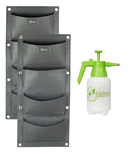 YOUR PRACTICAL-NEAT-DURABLE SOLUTION. Includes 2 waterproof wall hanging planters made with eco-friendly materials & one 1 liter garden sprayer with stainless steel rod and adjustable copper tip