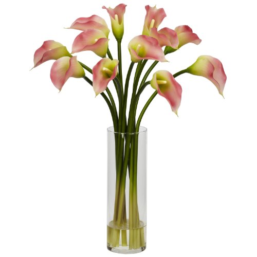 The Calla Lily is a centuries old favorite that hails from African origin. The "simple yet elegant" bulbs are bright and colorful, with large leaves and a thick stem. The Calla Lily is truly a classic beauty, with an understated radiance. Whether it's for a dining room or a study, Calla Lilies will enhance the décor without dominating it. Comes complete with a beautiful vase with faux water.Feature