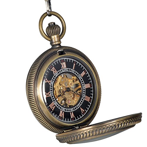 -. Title : Brass Magnifying Skeleton Mechanical Men's Pocket Watch