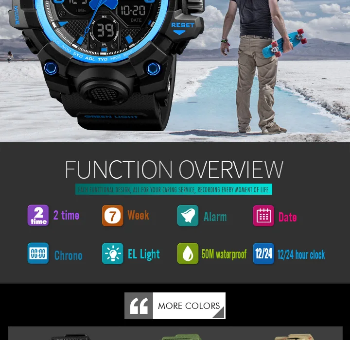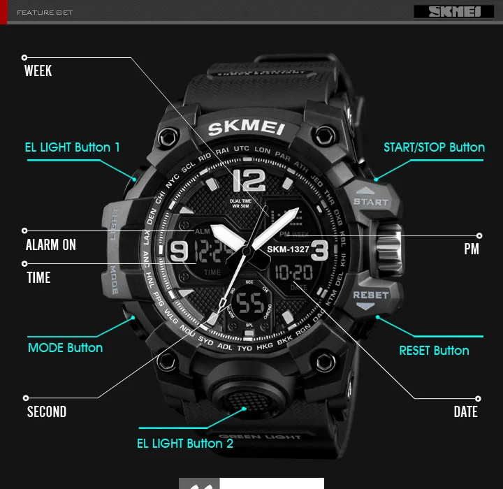 Feature:Water Resistant,LED display,Stop Watch,Back Light,Shock Resistant,Diver,Chronograph,Swim,Alarm