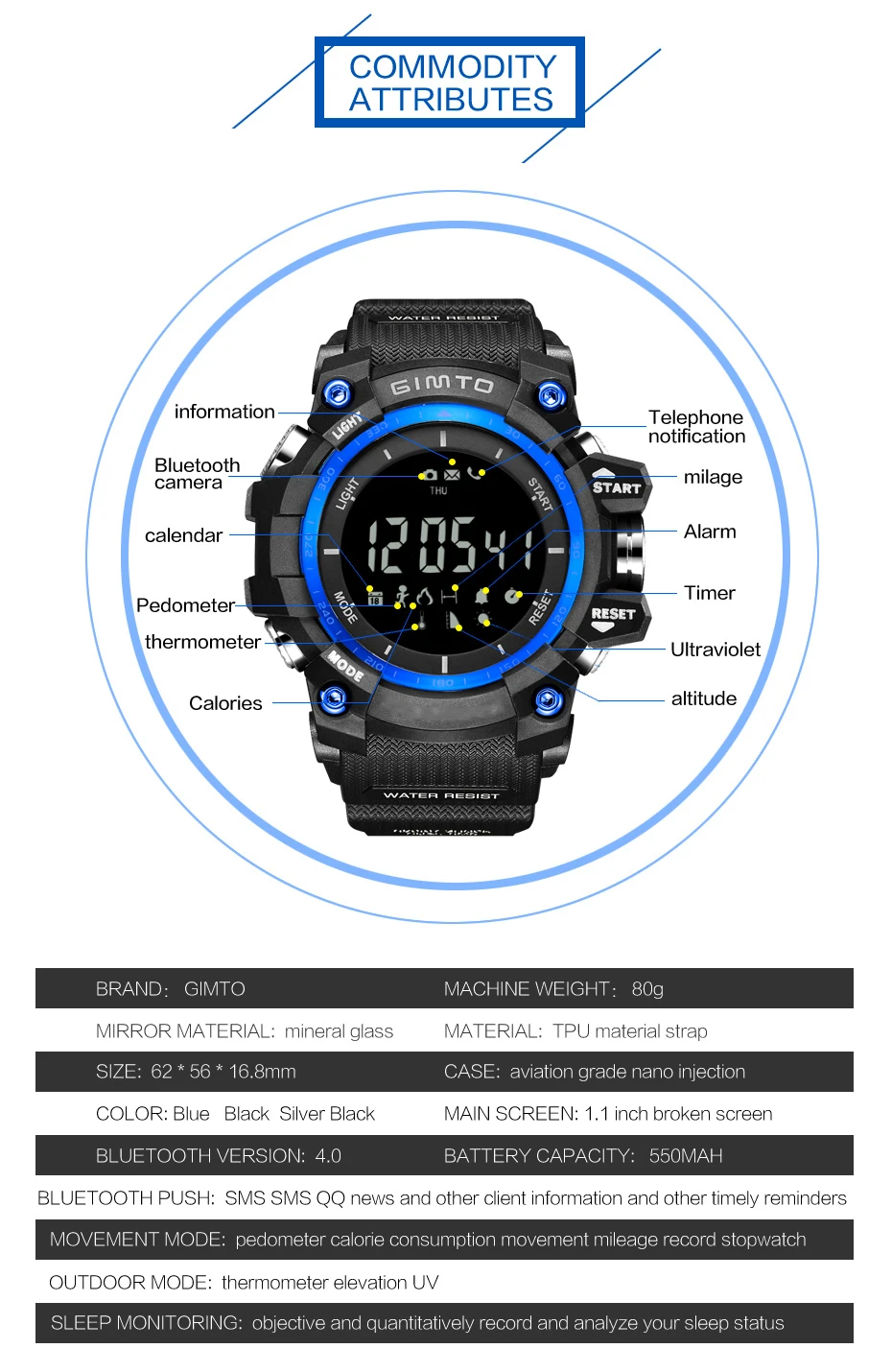 Feature05:wrist watch for boy, watch pedometer, watch bluetooth
