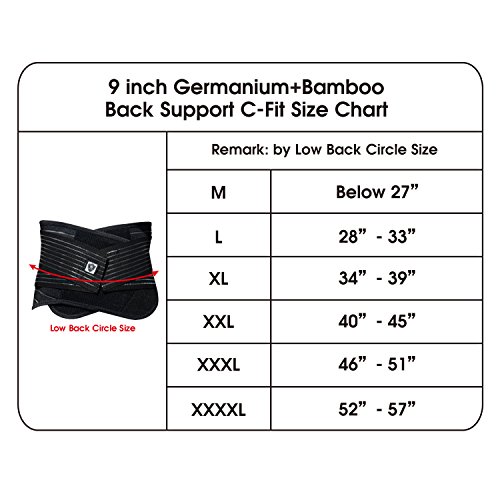 Vital Salveo-Adjustable Germanium and Bamboo Charcoal Lower Back Support Relieve Back Pain, Sciatica C-Fit (XXX-Large)