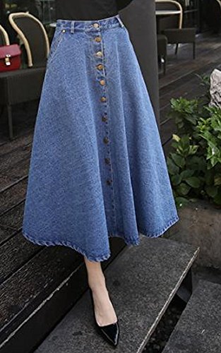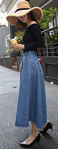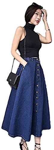 -. Title : (sleeping sheep) オールシーズン ロング デニムスカート 可愛い カジュアル Aライン フレア マキシスカート ロングスカート レディーススカート