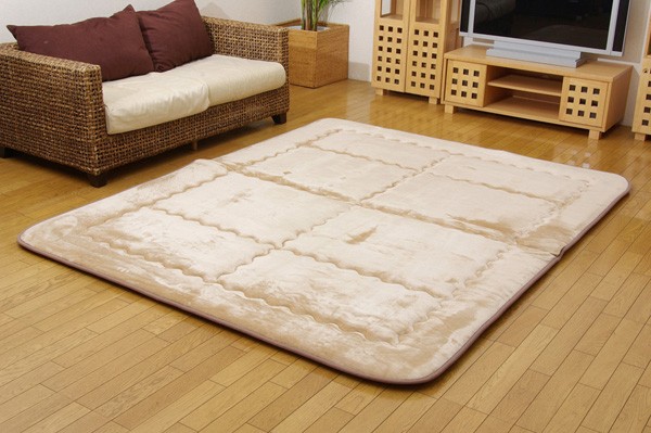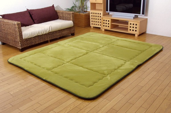 表地には肌触りが良く、耐久性に優れたマイクロファイバーを使用しています。中材にはクッション性にこだわった国産の固綿40mmを使用しています。十分な弾力性があるのでフローリングでのご使用にも最適です。遮音特級LL-30を取得しています。床下への騒音も軽減します。また、こたつと併用するとこたつの熱を床下へ逃しにくくなるので省エネ効果もあります。