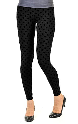 Perfect for layering in style! Team these fun leggings with oversized sweaters. No baggy knees! Comfortable waistband. Ankle length. Stretchy skinny leg. Flocked polka dots all over. Body: 95% Cotton. 5% Spandex. Decoration: 100% Nylon Flocking. Imported by Hue.Feature