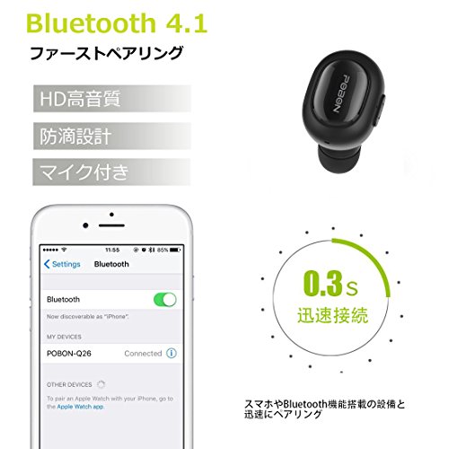 -. Title : Bluetooth イヤホン Bovon 片耳 ワイヤレスヘッドセット ミニサイズ 軽量 Q26 Bluetooth 4.1 ステレオヘッドセット 高音質 マイク内蔵 ハンズフリー通話 イヤーピー ス付属 防滴仕様