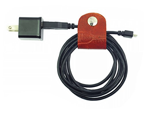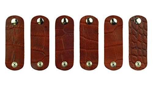 Leather Cord Orangizer Clips Set, 6 Snap Closed Pieces, Mahogany